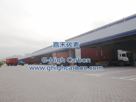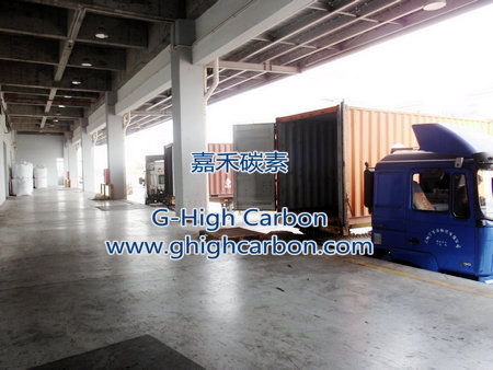 嘉碳一千五百噸石油焦增碳劑貨物在貨倉裝箱準備集港