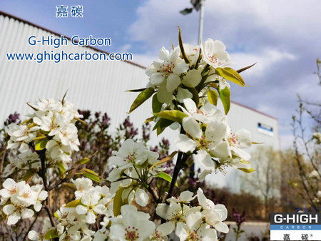 又是一年春來到,嘉碳增碳劑生產(chǎn)車間外,桃花朵朵開。
